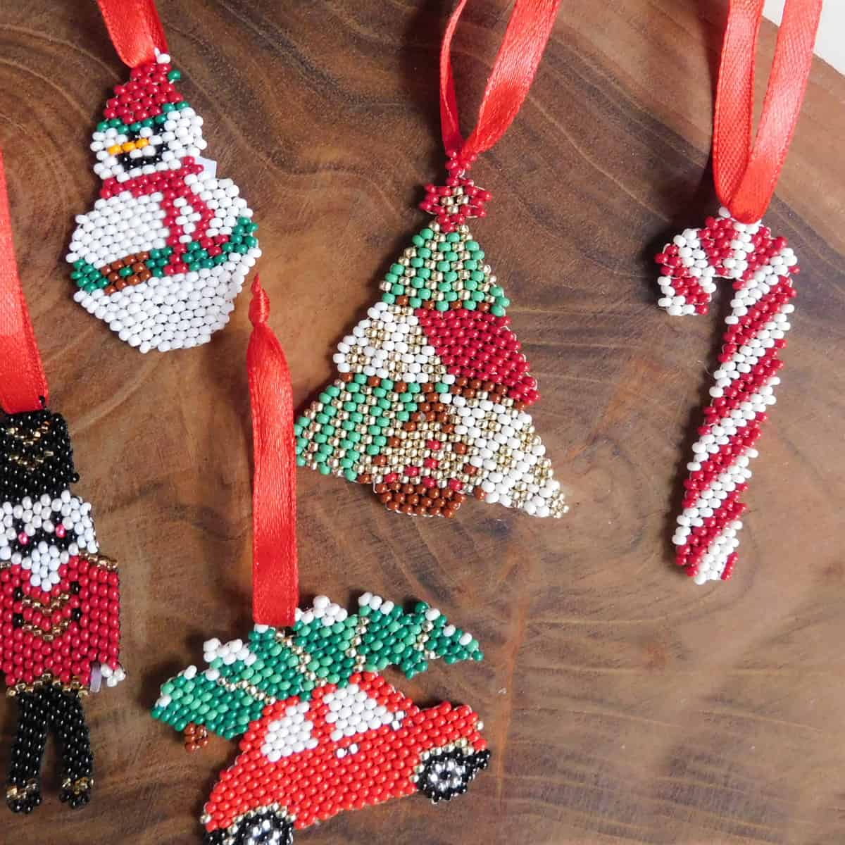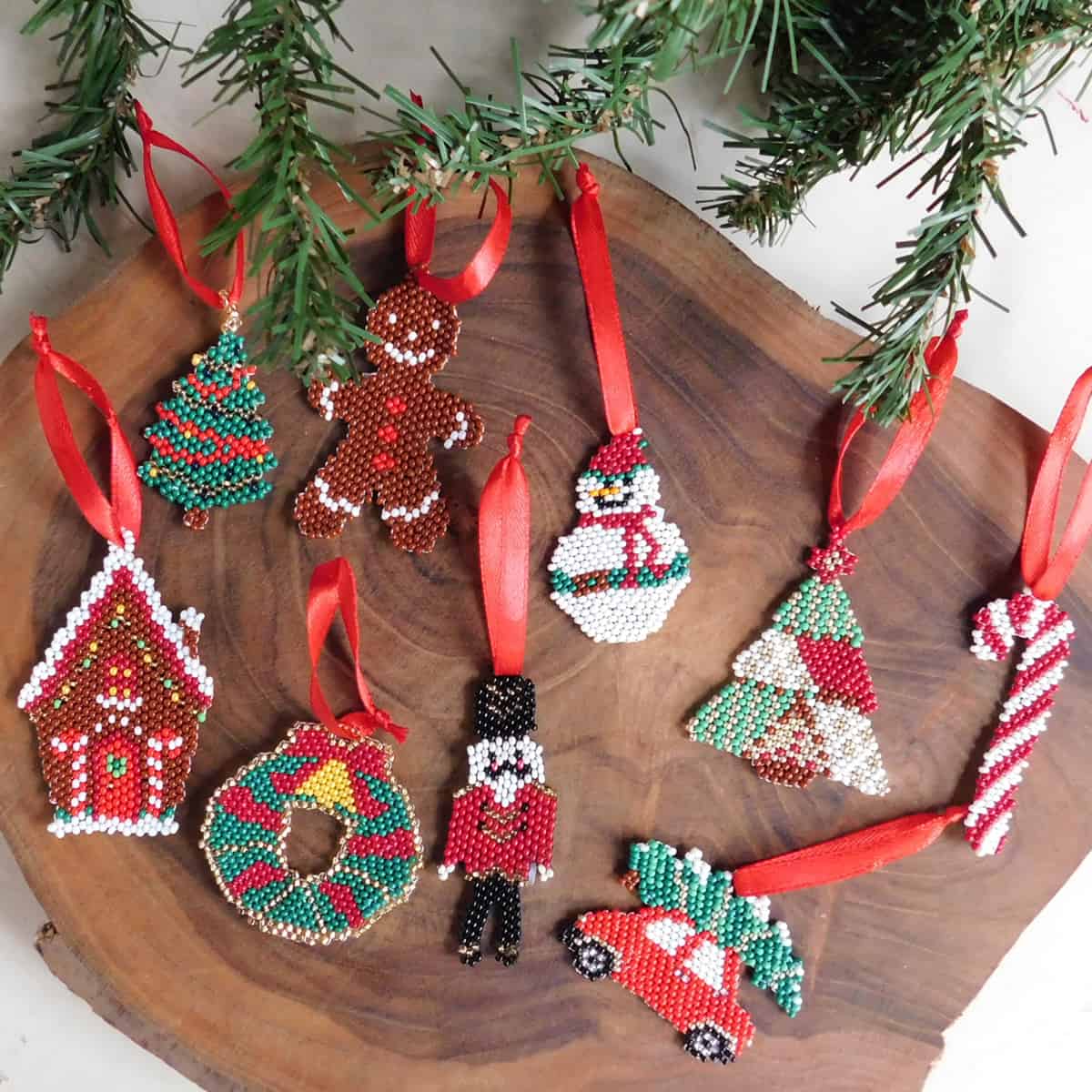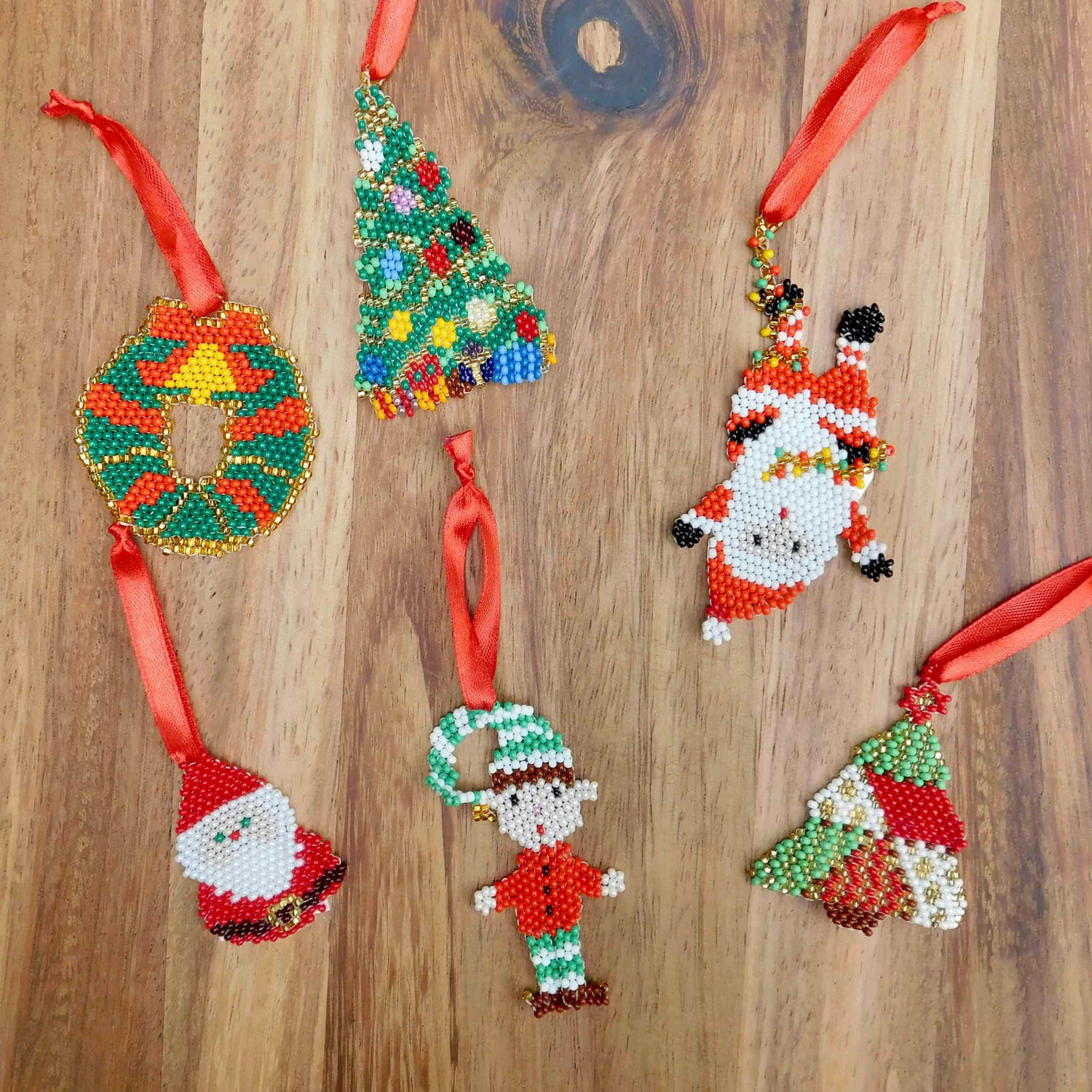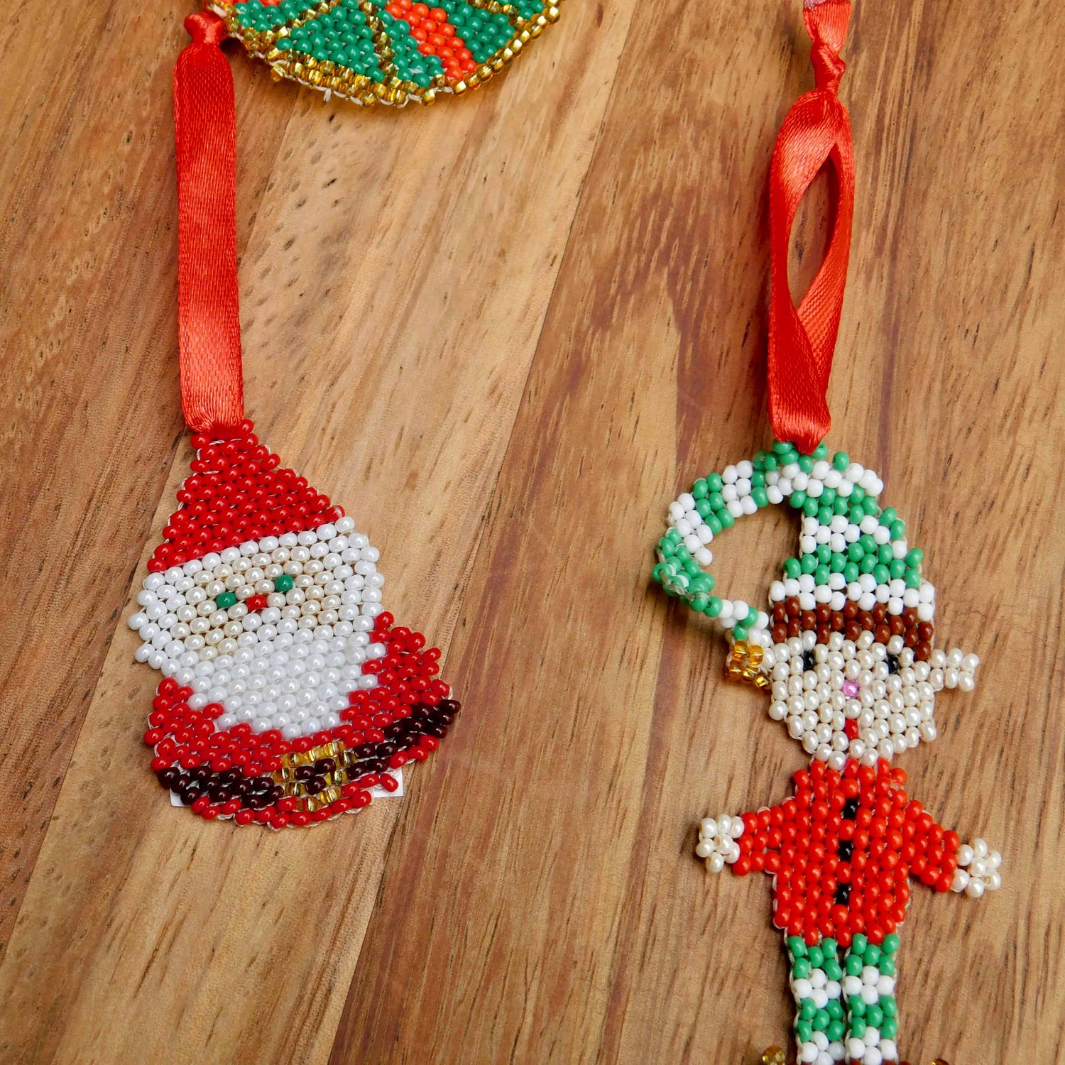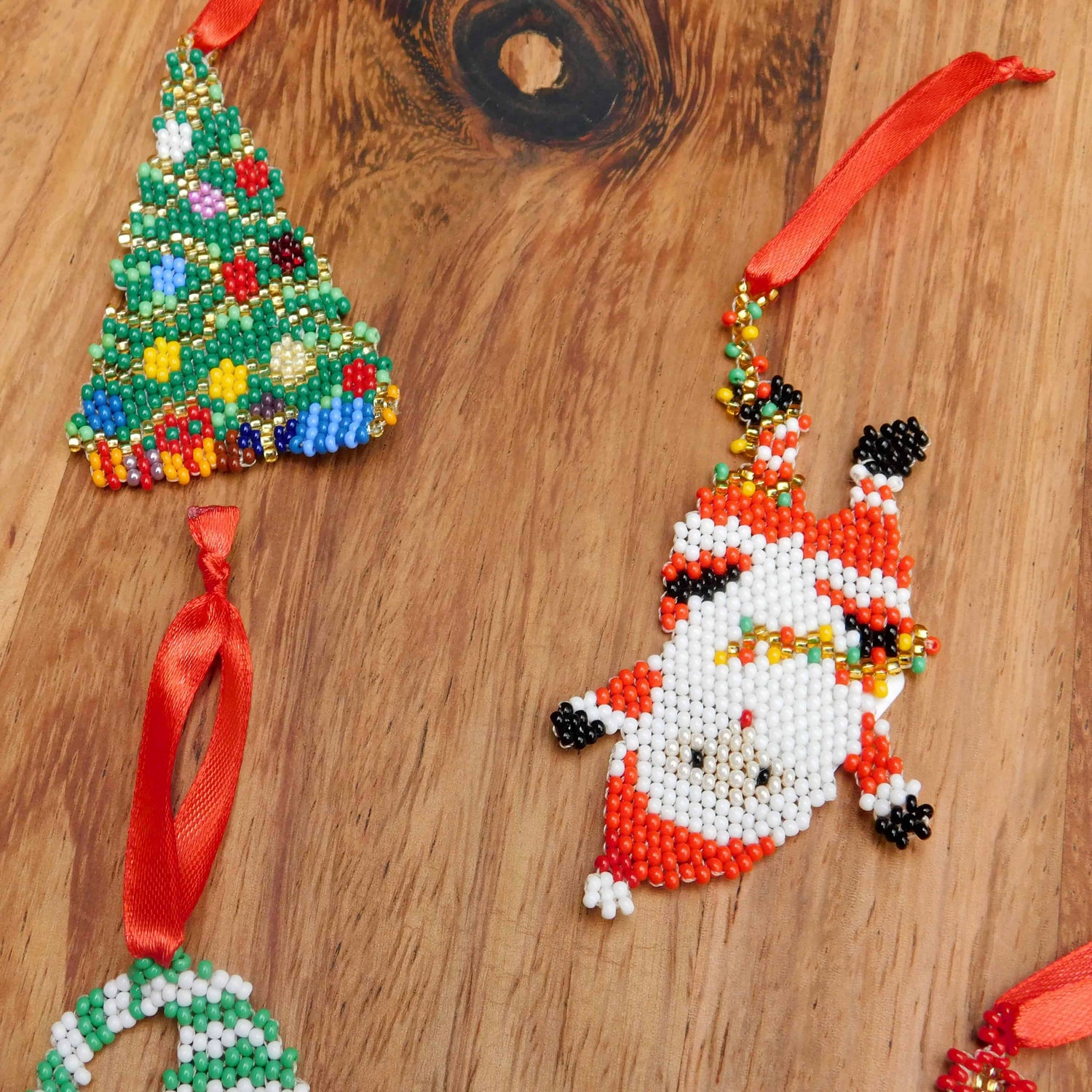 Esta colección de adornos de mostacilla checa alegrará tu casa por muchos años. Los ofrecemos en una variedad de diseños - un árbol de pino, un árbol navideño, una casita de jengibre, una corona, un Santa Claus, y más! Ligeros y coloridos, son perfectos para los árboles más pequeños o para colgar en prácticamente cualquier parte de la casa.
