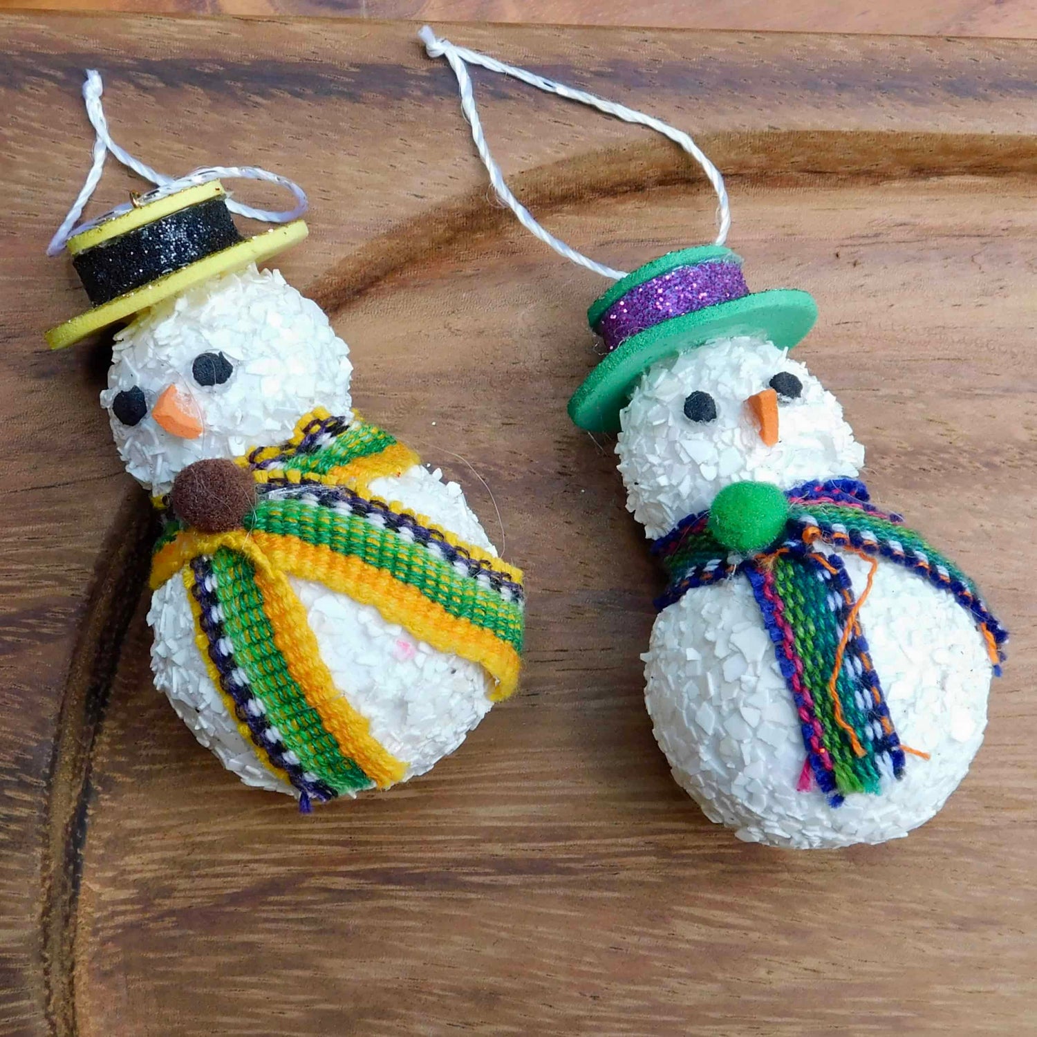 Dale a tu árbol un toque único y divertido con estos adornos escarchados hechos a mano por artesanas guatemaltecas. Cada pieza combina la delicadeza de la cáscara de huevo reciclada con el diseño encantador de Frosty, esfera navideña y estrellas, además de detalles de tela típica que le dan color y alegría. Perfectos para llenar de magia y tradición tu Navidad.