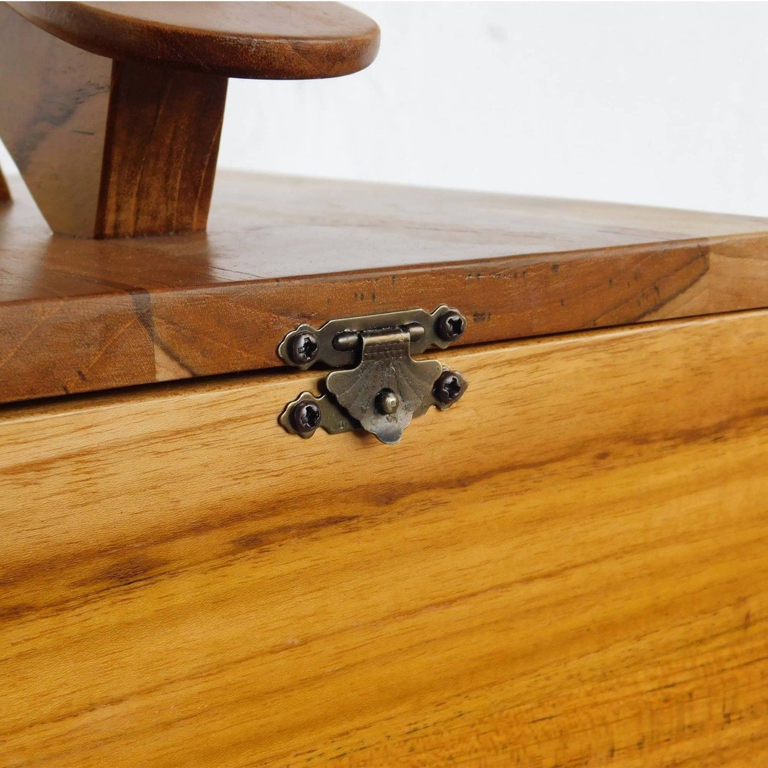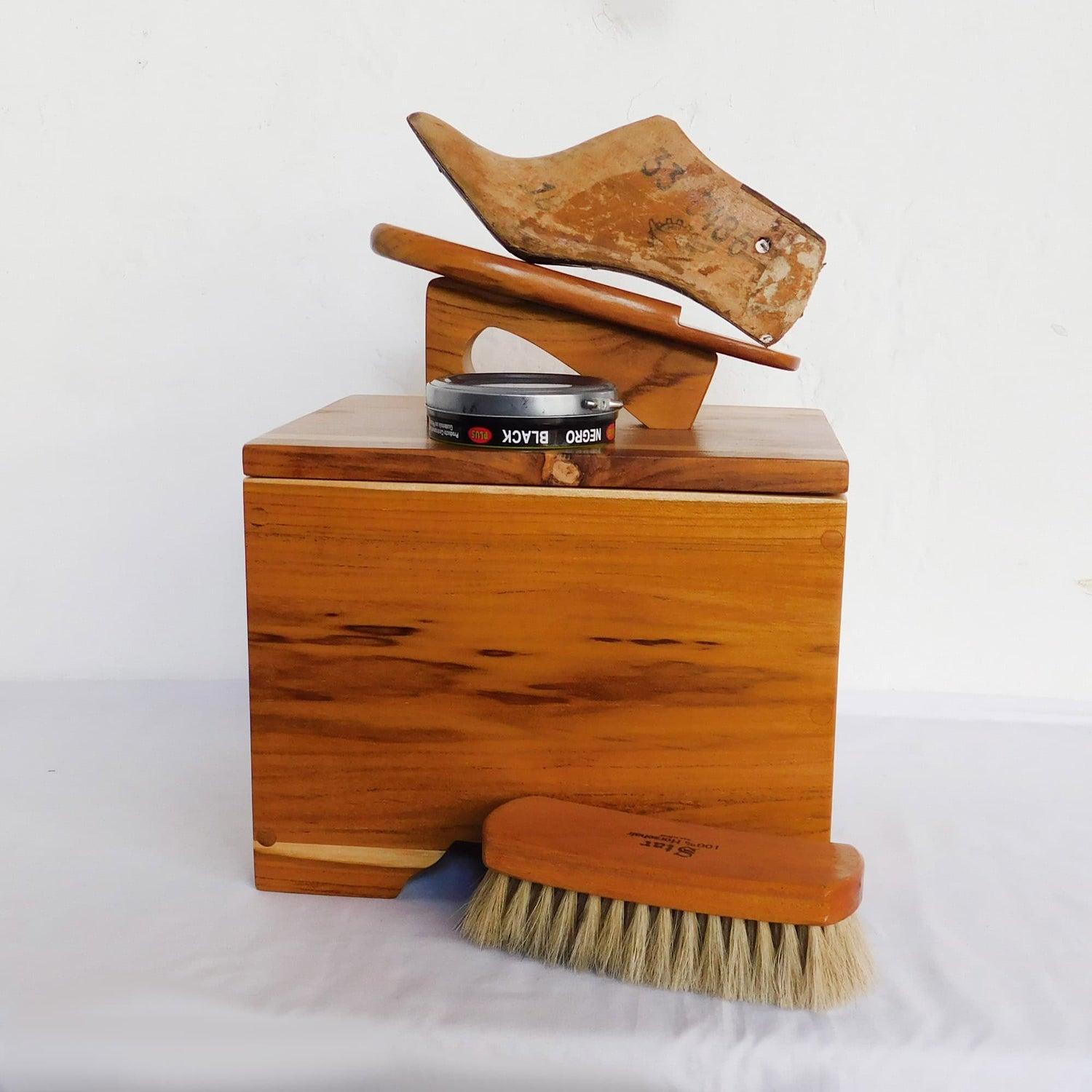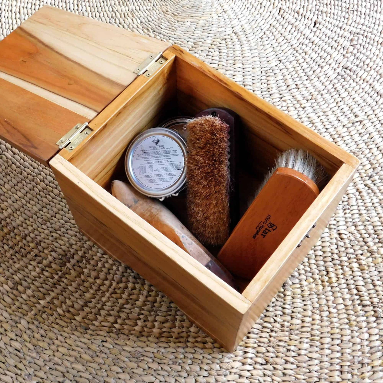 Esta caja para lustrar zapatos, elaborada en madera de teca, combina funcionalidad y elegancia en un diseño estilo cofre. Ideal para organizar y guardar tus productos de cuidado del calzado, ofrece durabilidad y un acabado sofisticado que realza cualquier espacio. Su estructura robusta protege tus artículos mientras mantiene todo ordenado y accesible, facilitando el mantenimiento profesional de tus zapatos. Perfecta para quienes valoran la calidad y el estilo en cada detalle.