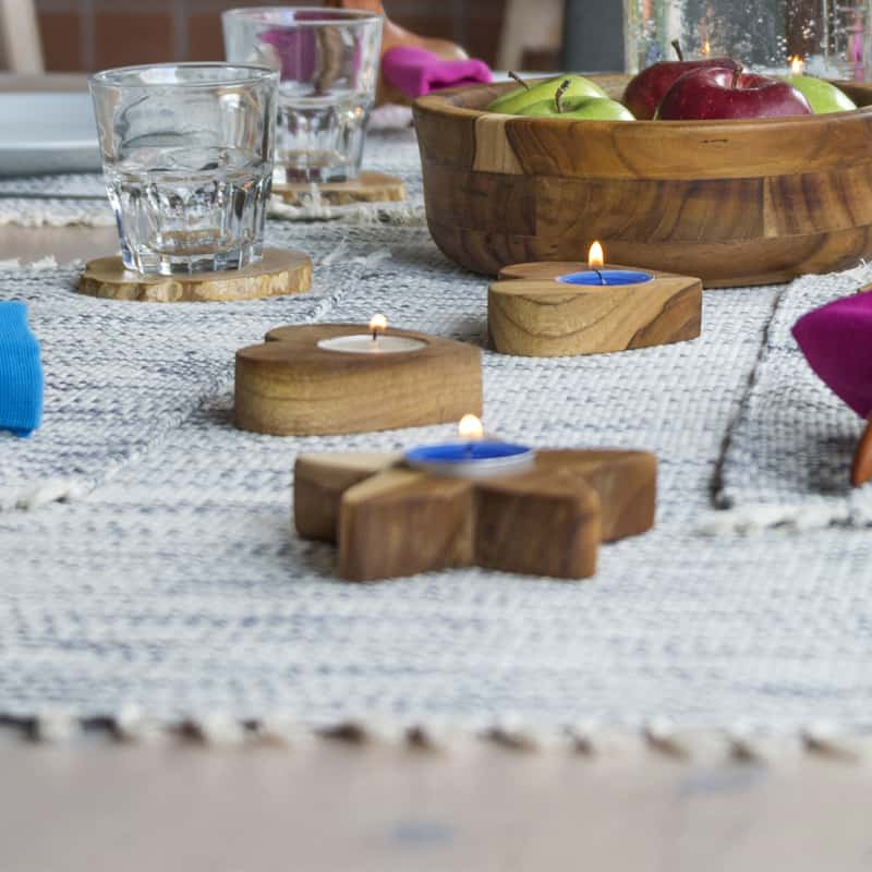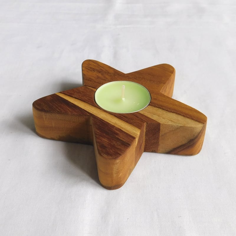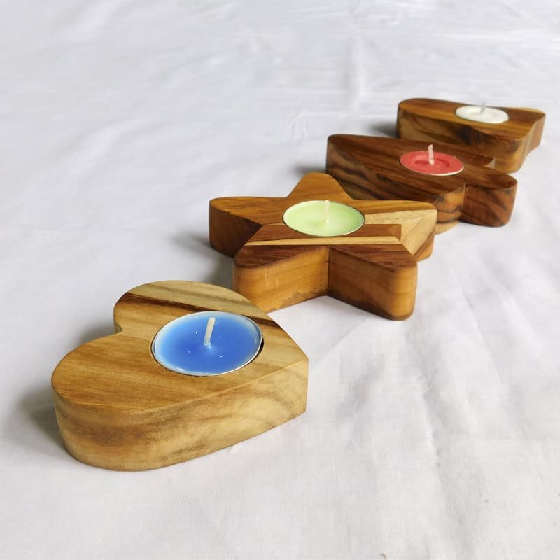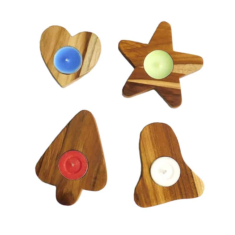 Estos hermosos candeleros fueron hechos a mano utilizando madera teca sostenible. Cada uno fue hecho a mano por un artesano guatemalteco con la forma de un artículo festivo diferente: una campana, un corazón, una estrella y un árbol. Colócalos juntos o apartes en medio de una mesa o repisa para crear una hermosa decoración variada pero que combina a la perfección.