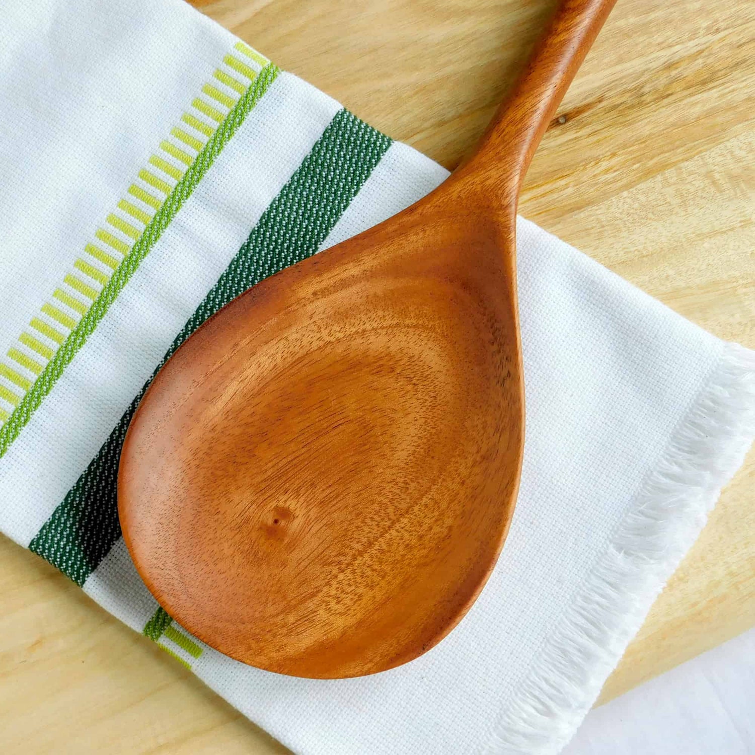 Una hermosa cuchara arrocera de cedro para cocinar y servir tus cenas favoritas con estilo y amor. Elaborada a mano por nuestros socios artesanos, esta cuchara no dañará el antiadherente. Una buena cuchara es una importante inversión parra mantener tus ollas y sartenes en las mejores condiciones. Esta cuchara arrocera es elegante, funcional y fácil de cuidar - todo lo más importante para un accesorio esencial para la cocina!