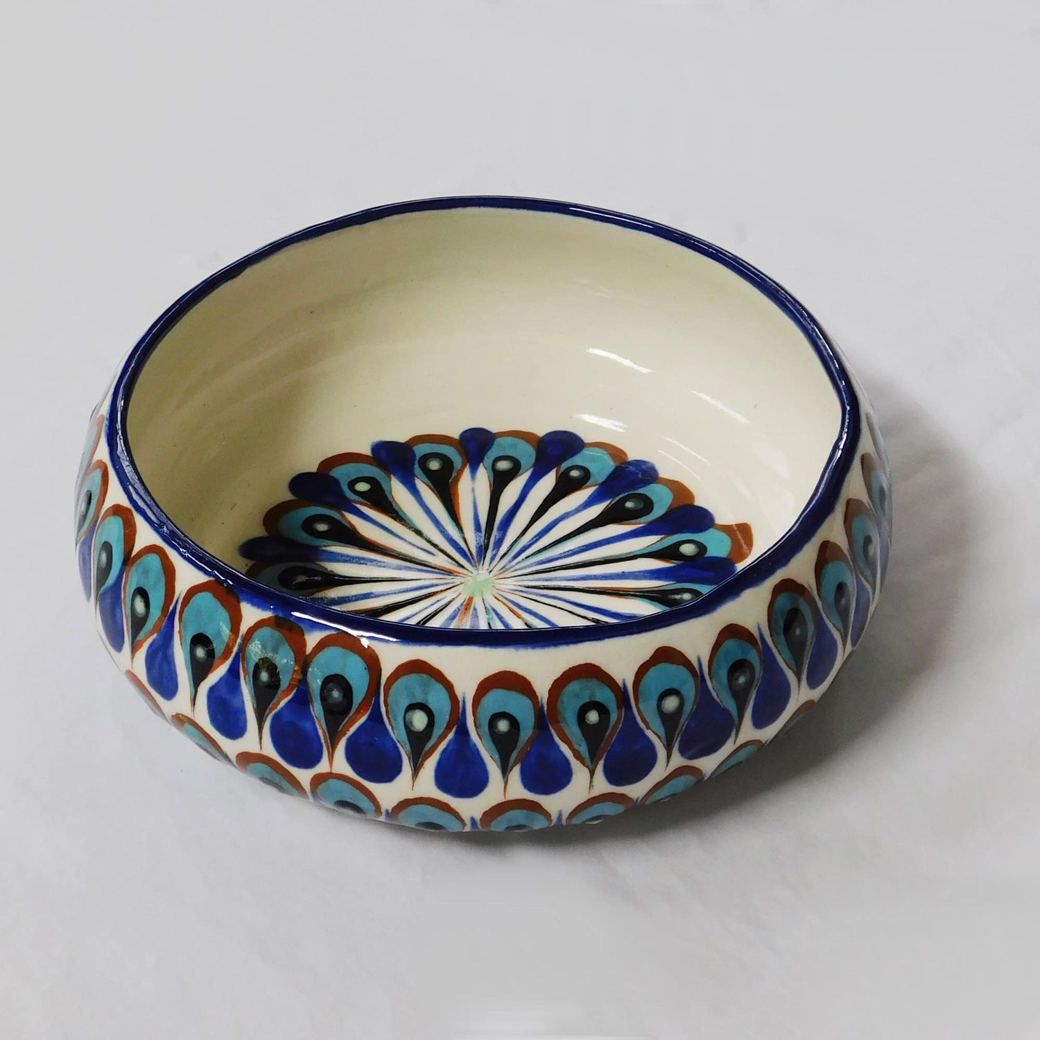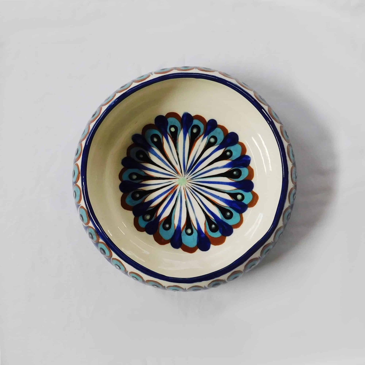 Esta ensaladera de cerámica hecha a mano por artesanos presenta un elegante diseño de gotas en azul y turquesa. Agrega un toque único a tu mesa mientras disfrutas de tus comidas. Hecha con materiales de calidad, esta ensaladera es hermosa y funcional.