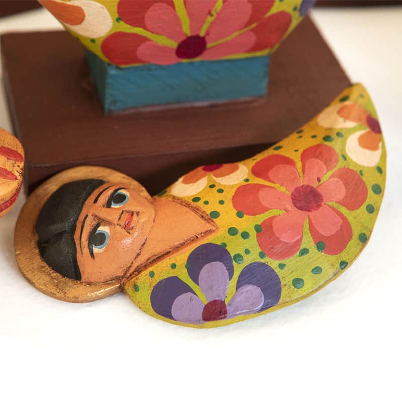 Cada nacimiento es único, con diferentes colores y patrones basados en lo que ha inspirado a nuestro socio artesano. El motivo floral recuerda a la Navidad en Guatemala: colorido y brillante. El niño Jesús viene separado del pesebre para poder poner la figura del niño en el pesebre la noche de Nochebuena.