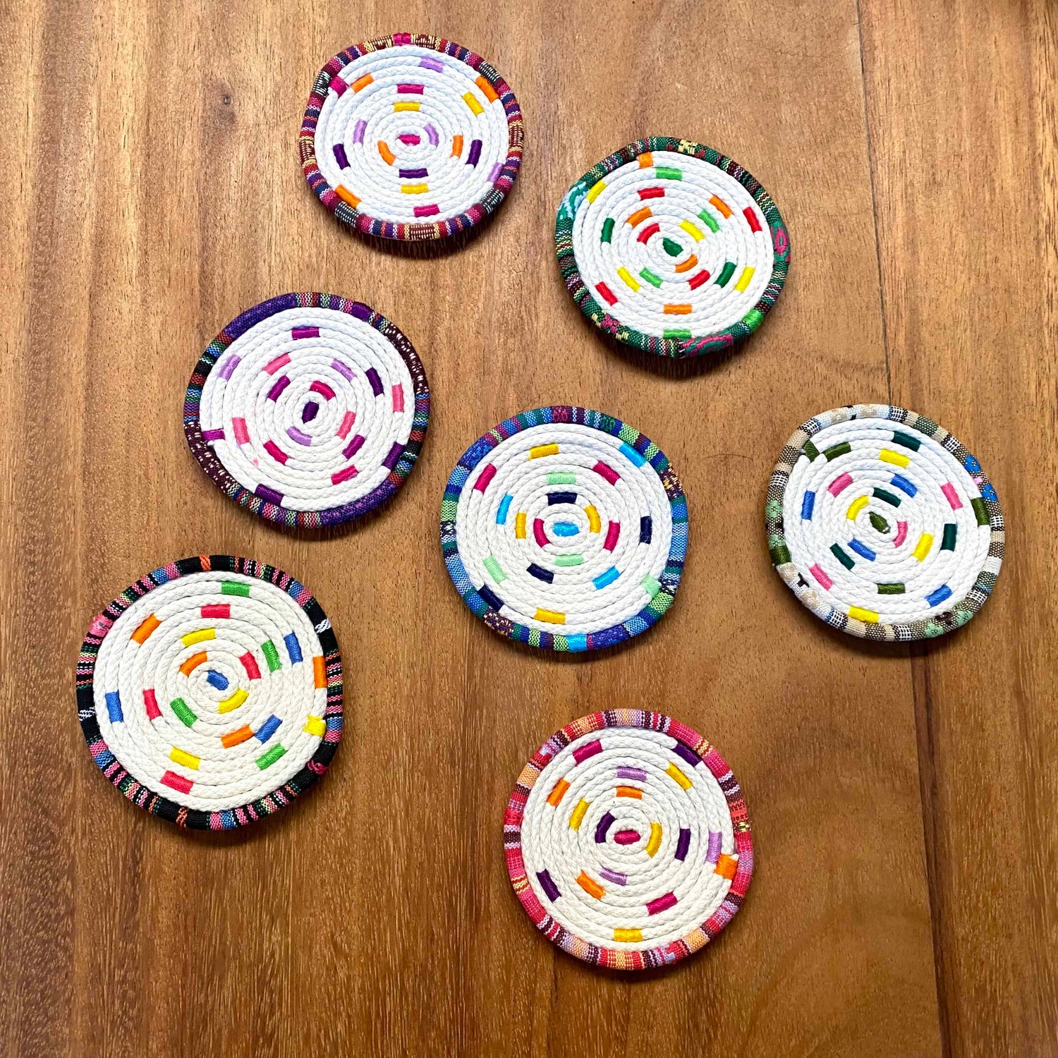 Estos posavasos están elaborados por artesanos guatemaltecos con hilo y lazo de algodón y un cordón típico en colores surtidos. Son duraderos, livianos y le darán un toque alegre y colorido a tu hogar. ¡Protege tus muebles con estos posavasos únicos!
