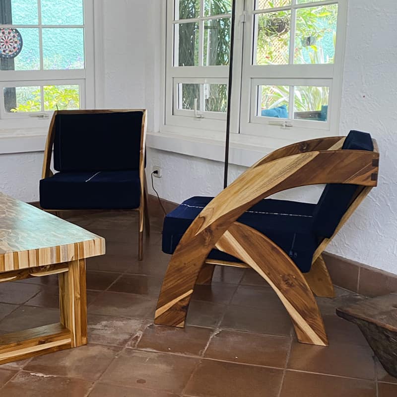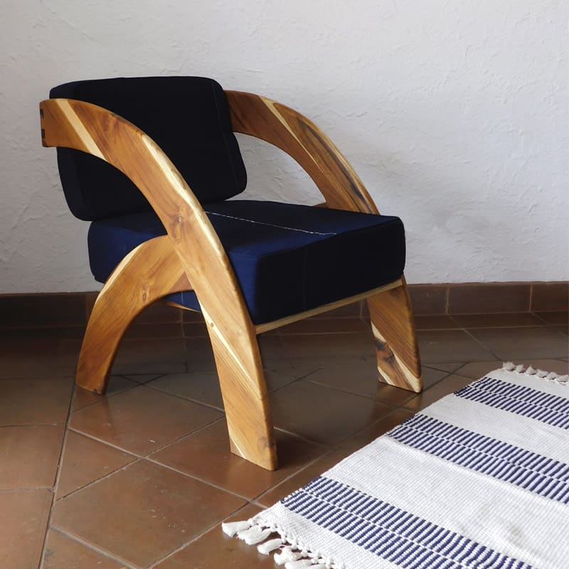 El sofá minimalista ha sido pensado para ofrecer comodidad en salas de apartamentos modernos donde el aprovechamiento del espacio es importante. Su diseño de curvas lo hacen un elemento moderno para ser parte de la decoración de tu hogar. La madera sólida de teca con sus hermosas vetas le dan un toque de calidez mientras que la tela de corte le agrega un hermoso toque de orgullo por nuestro arte ancestral del tejido a mano. Puedes escoger la versión sofá, con el respaldo un tanto más recto, para la sala de tu casa, o la versión silla de descanso, más inclinado, para leer en la terraza o en la sala familiar.
