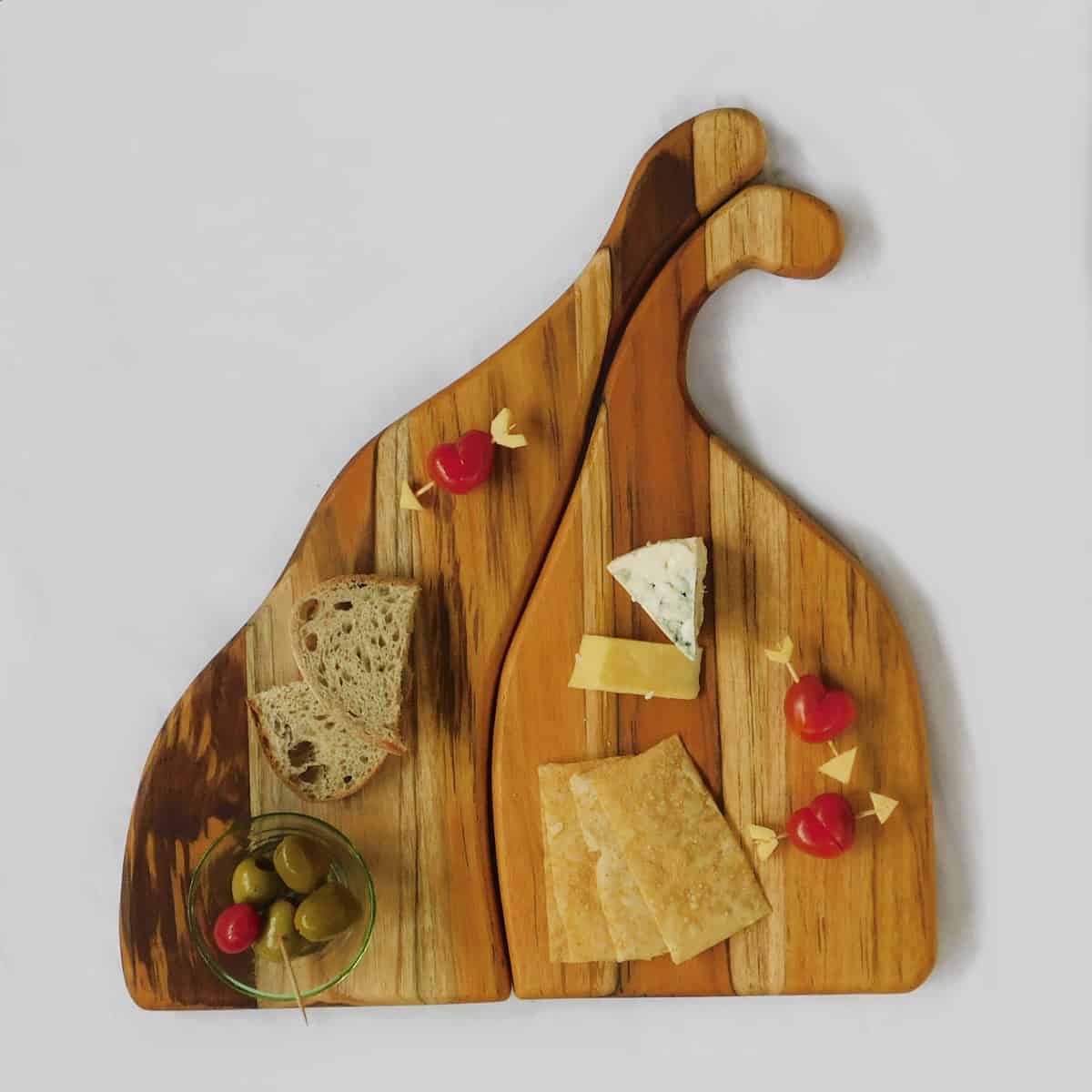 Estas hermosas y únicas tablas de picar y servir simulan la silueta de un par de jirafas juntas. Juntas o separadas, siempre se complementan. Perfectas para el Día de San Valentín o como regalo para una pareja. Elaboradas a mano por artesanos guatemaltecos quienes usan teca cosechada de forma sostenible. Solo se venden en set de 2.