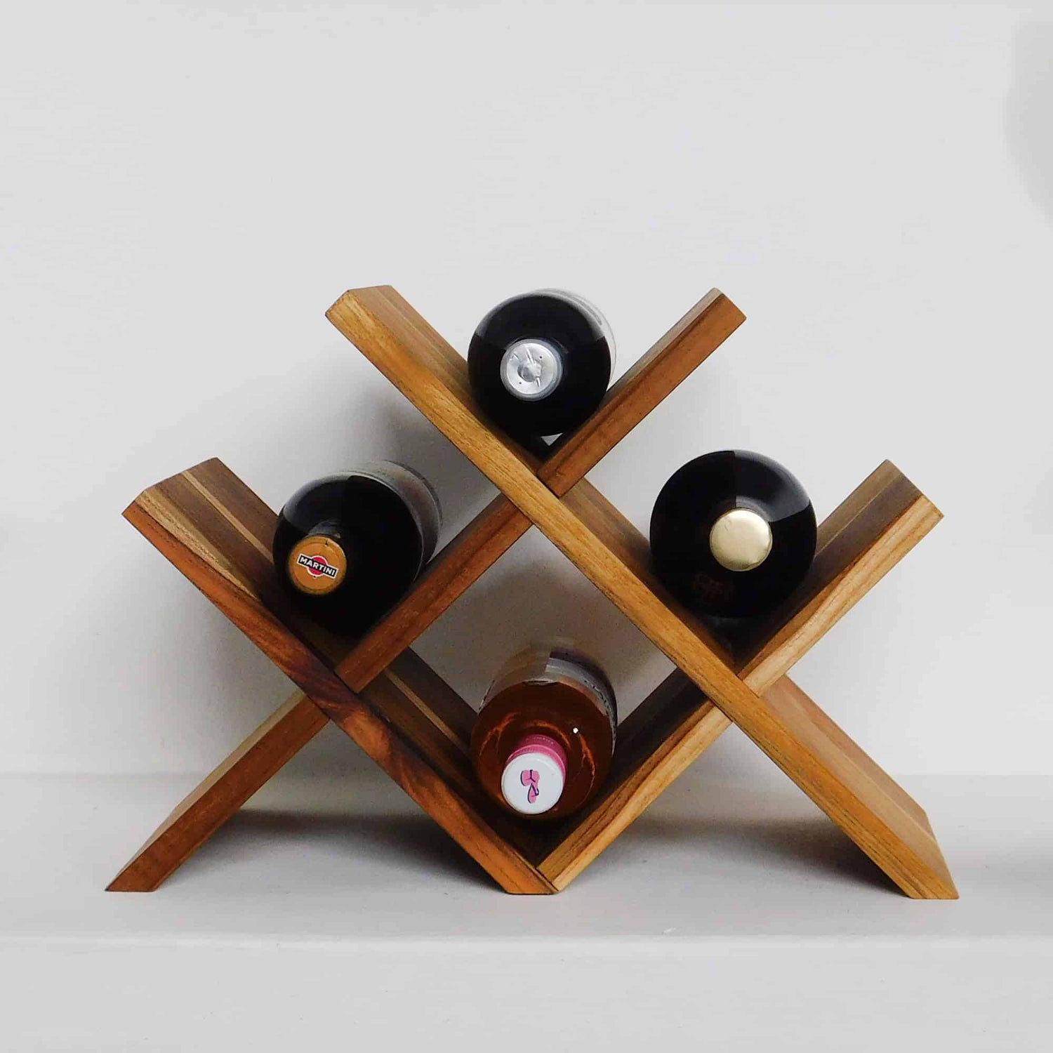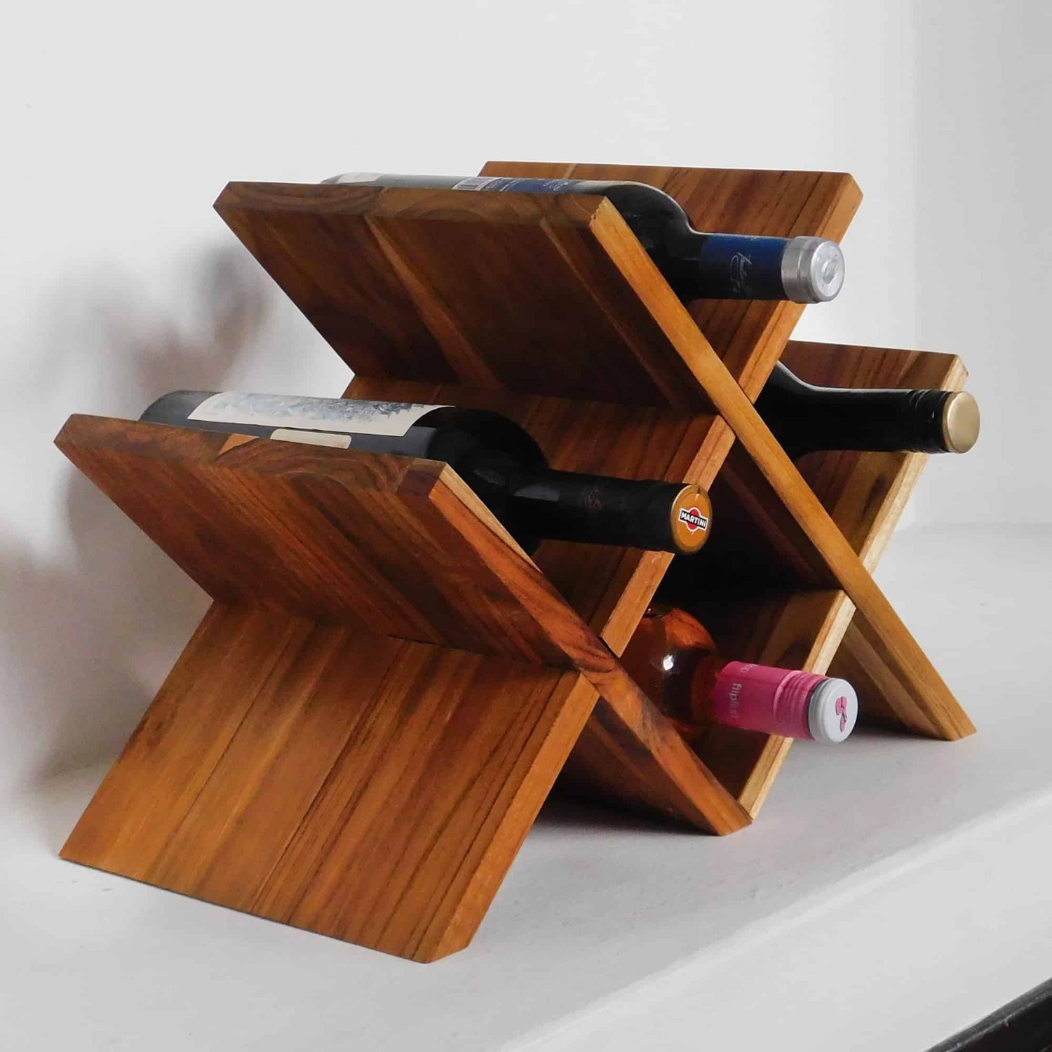 La vinera para 4 botellas es la opción perfecta para almacenar y exhibir tus vinos favoritos. Hecha de nuestra hermosa madera de teca, esta vinera artesanal no solo es linda, sino también elegante y funcional. Con capacidad para 4 botellas, podrás mantener tus vinos en perfecto estado y lucirlos en tu hogar u oficina.